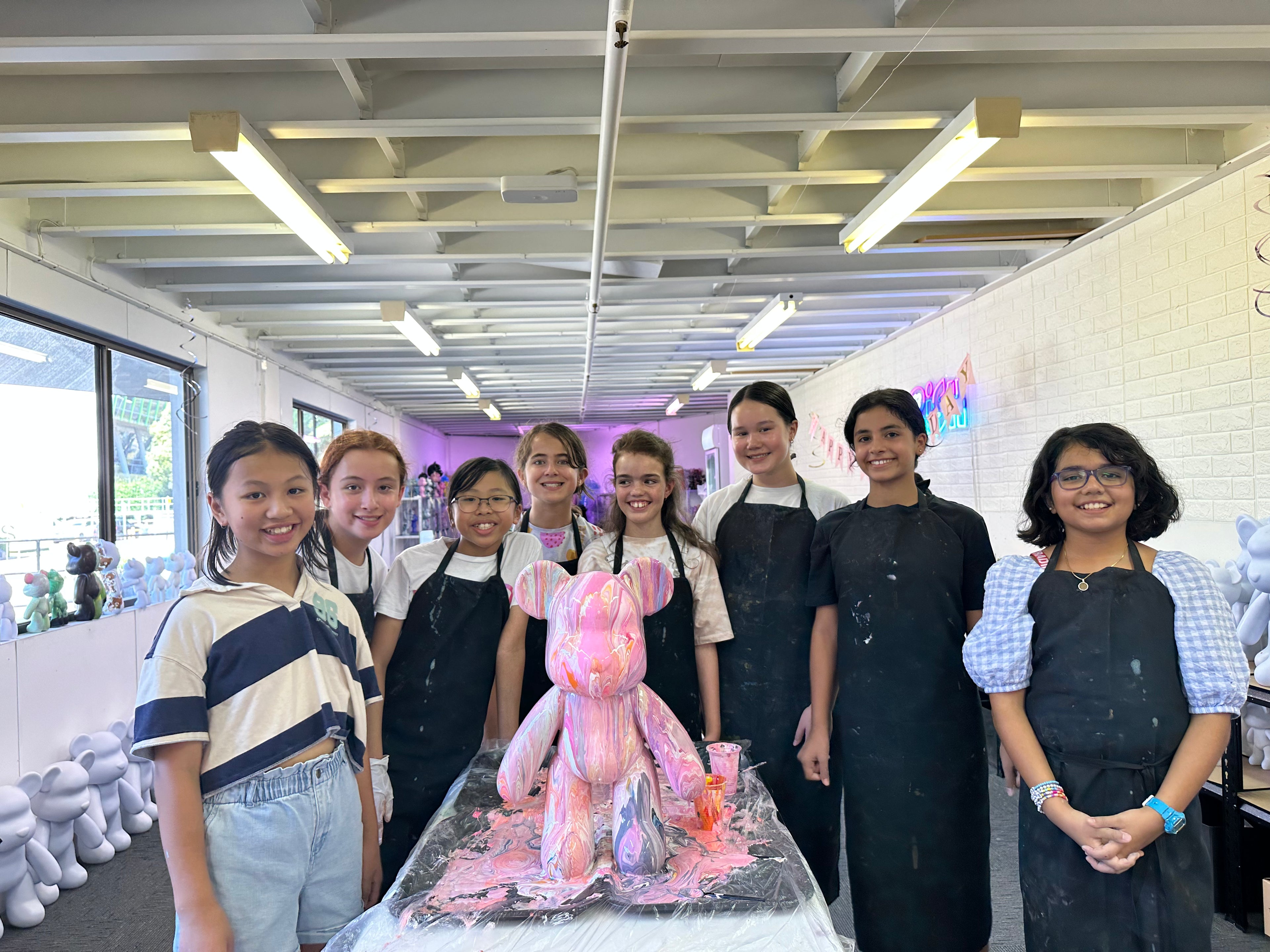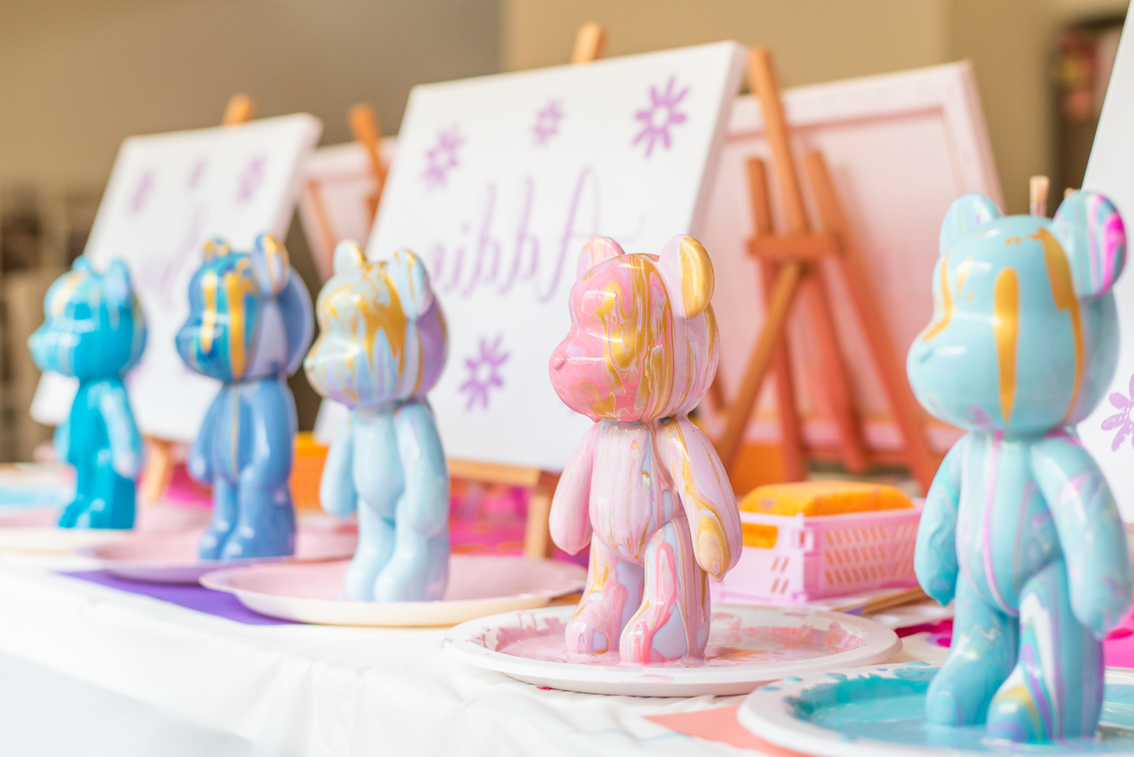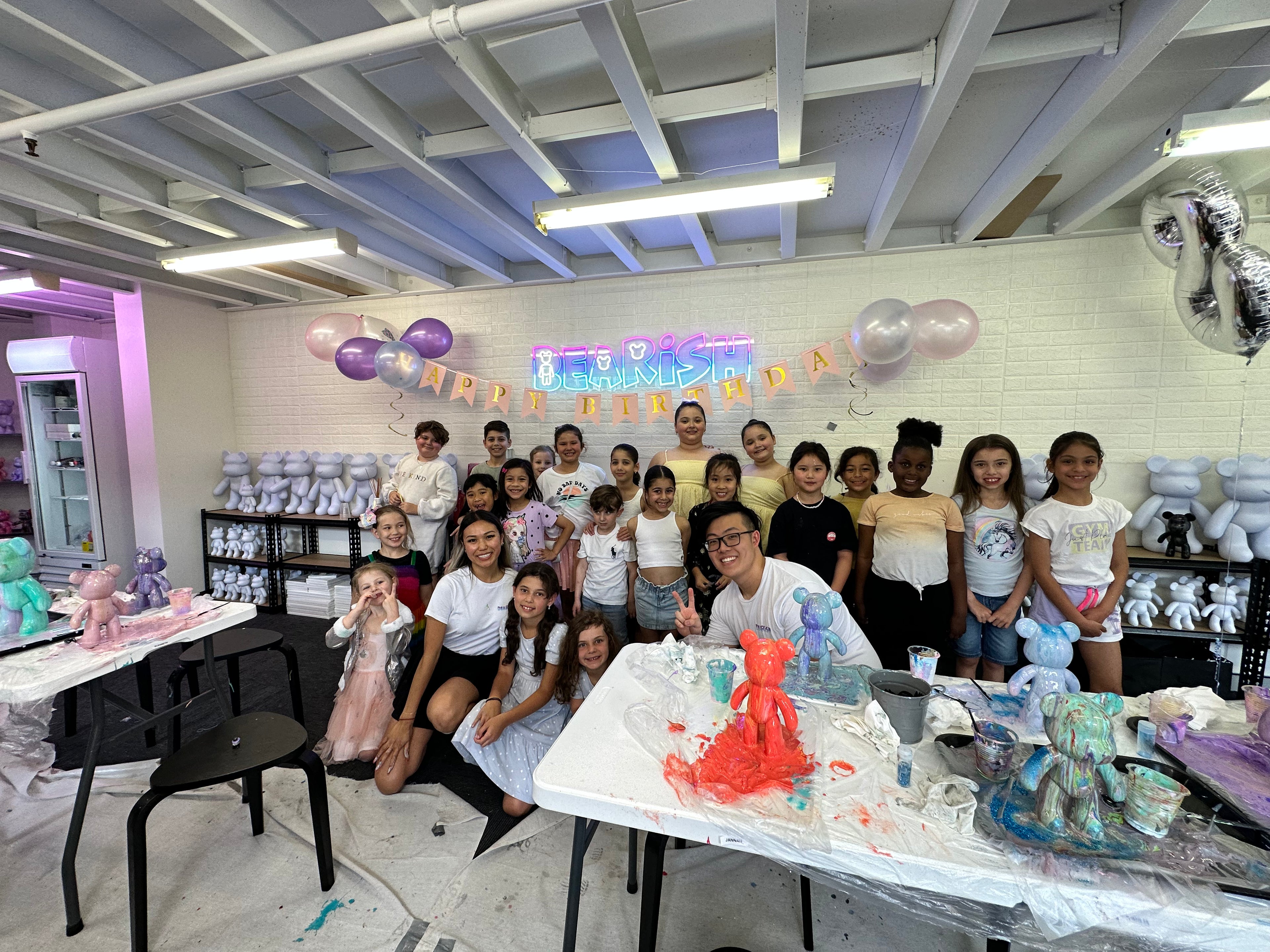 Enjoy a 2-hour private party where guests can paint their own fluid bear masterpieces, perfect for groups of 10 or more kids.