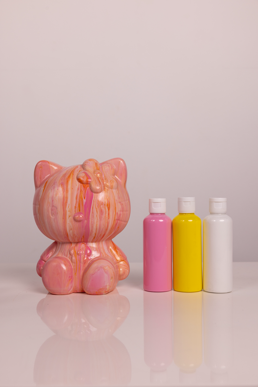 Please note: Colours depicted on the screen may differ slightly to the ones you receive. We have done our best to select colours that closely match. Shake bottles of Fluid Pouring Paint before getting started. Some sculptures come with a coin slot so that they can be used to better paint the sculpture or as a way to encourage saving from an early age!