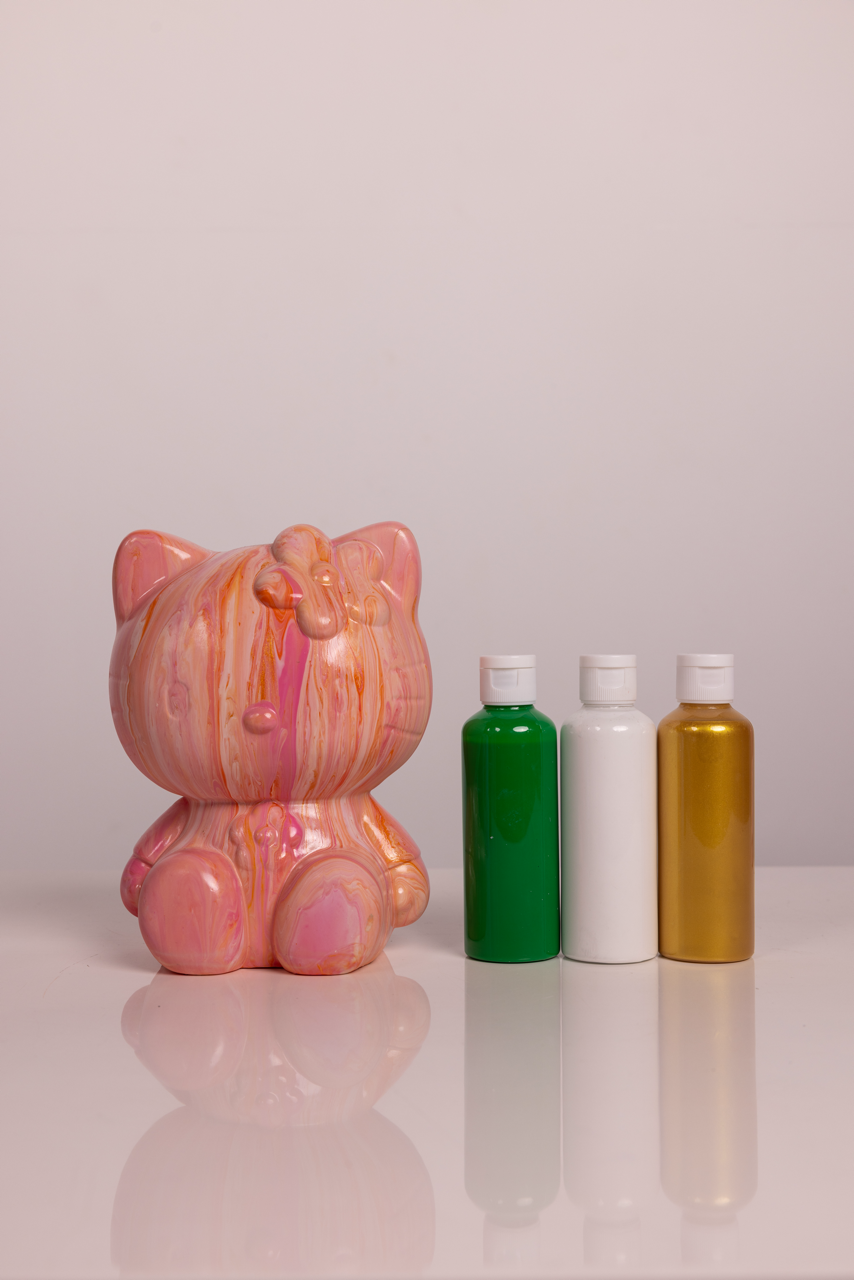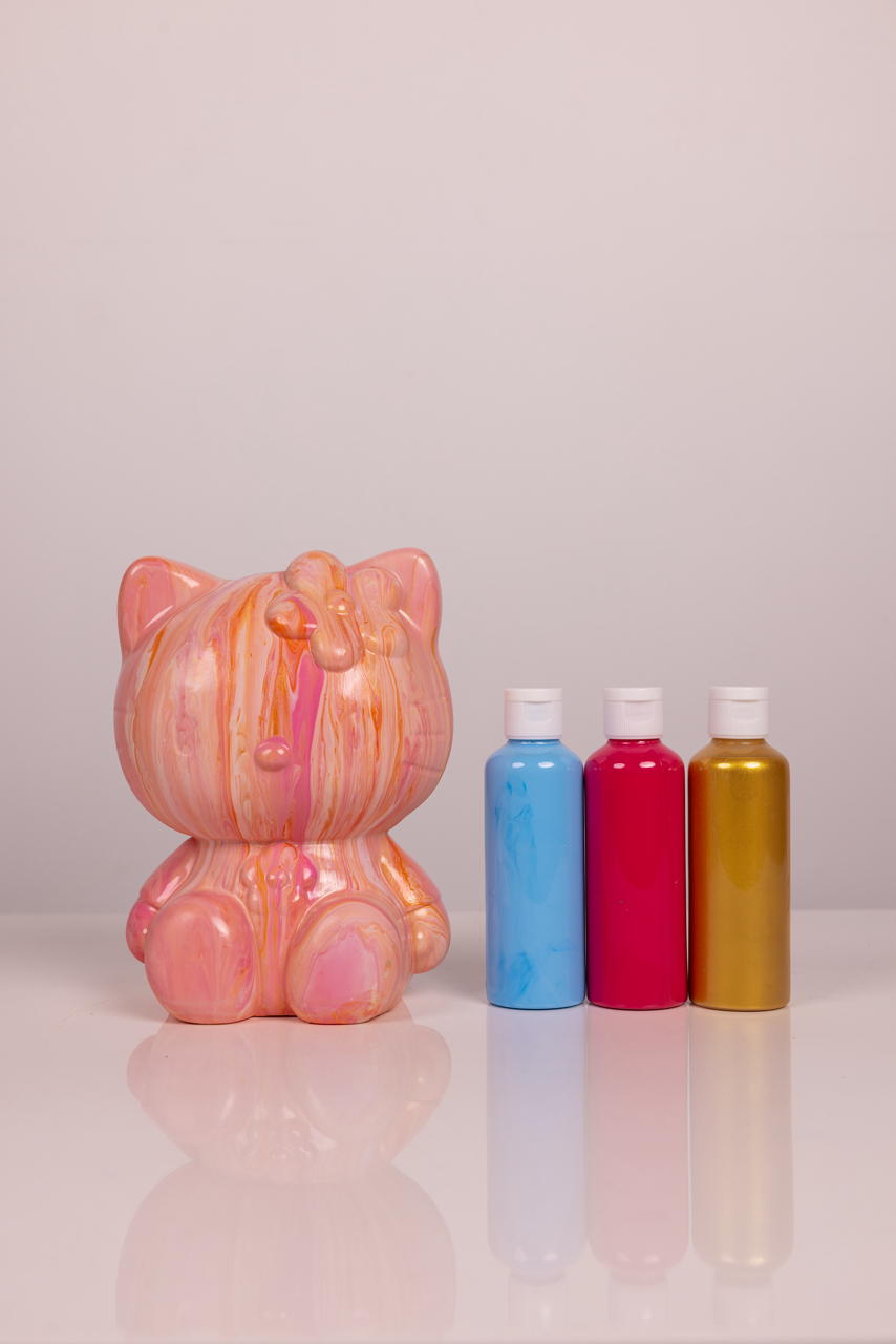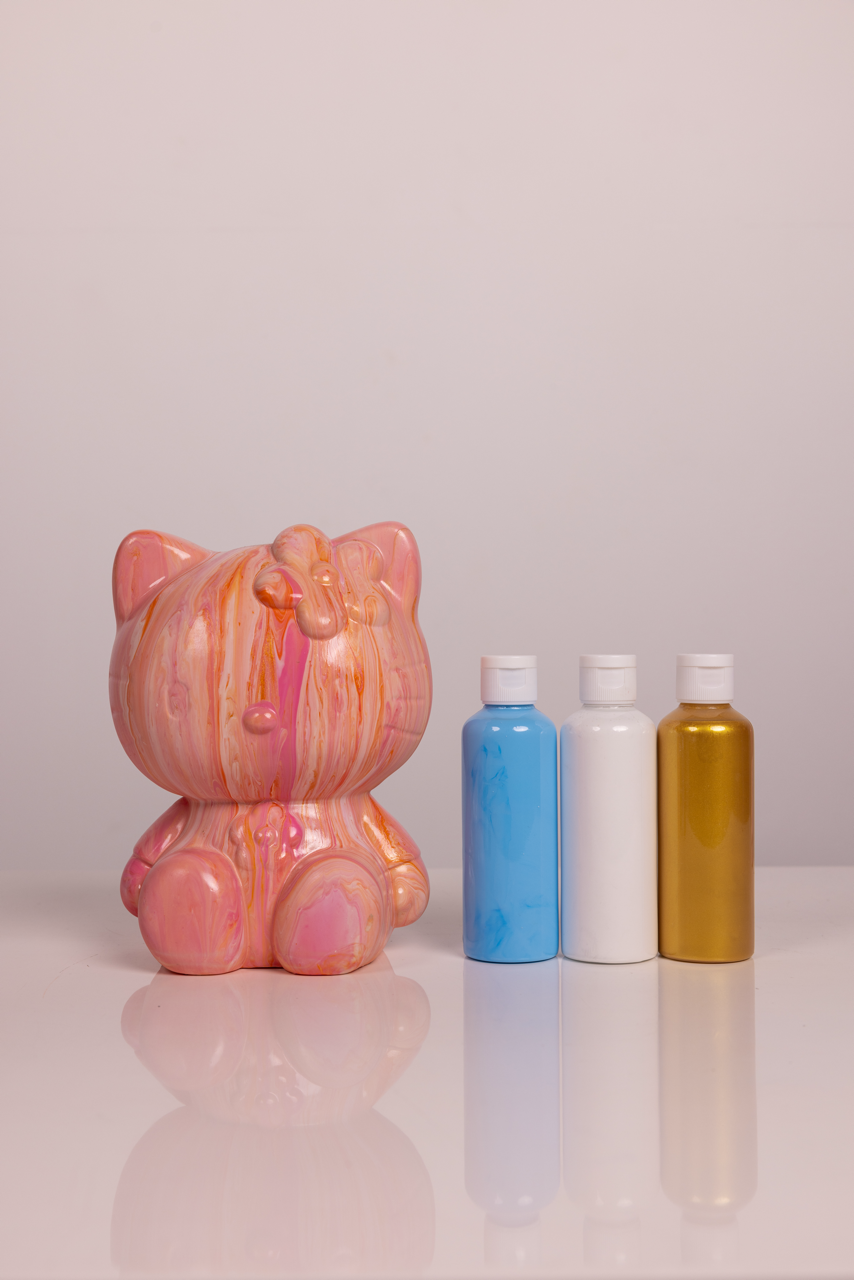 Please note: Colours depicted on the screen may differ slightly to the ones you receive. We have done our best to select colours that closely match. Shake bottles of Fluid Pouring Paint before getting started. Some sculptures come with a coin slot so that they can be used to better paint the sculpture or as a way to encourage saving from an early age!