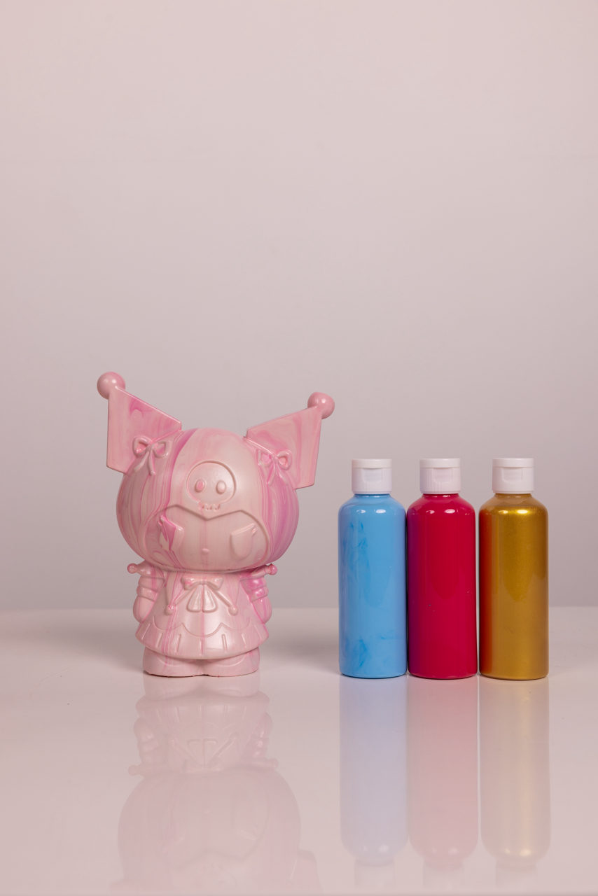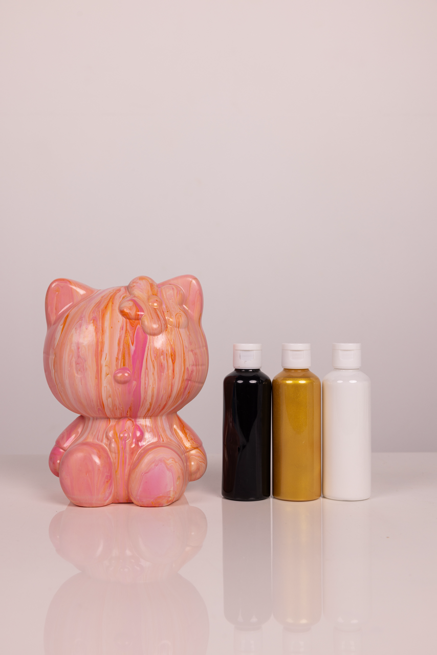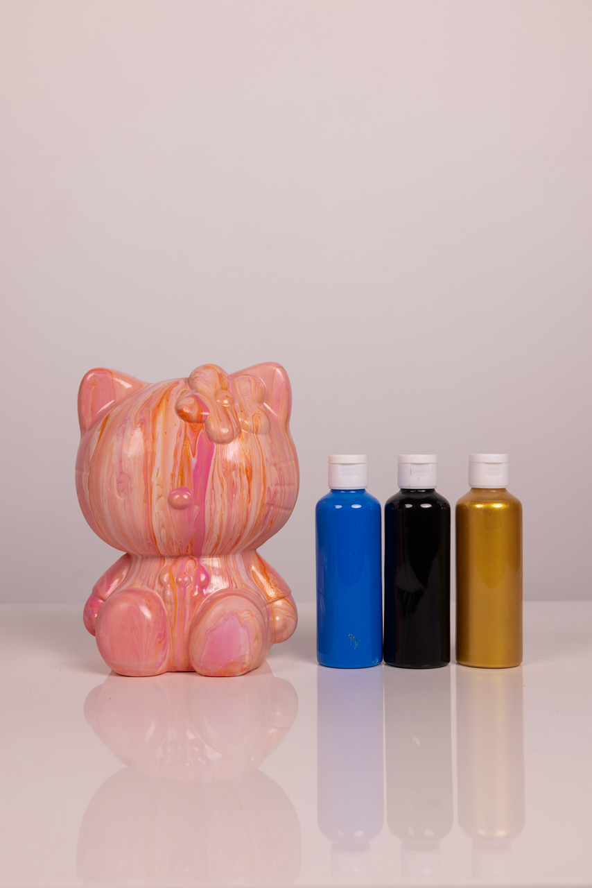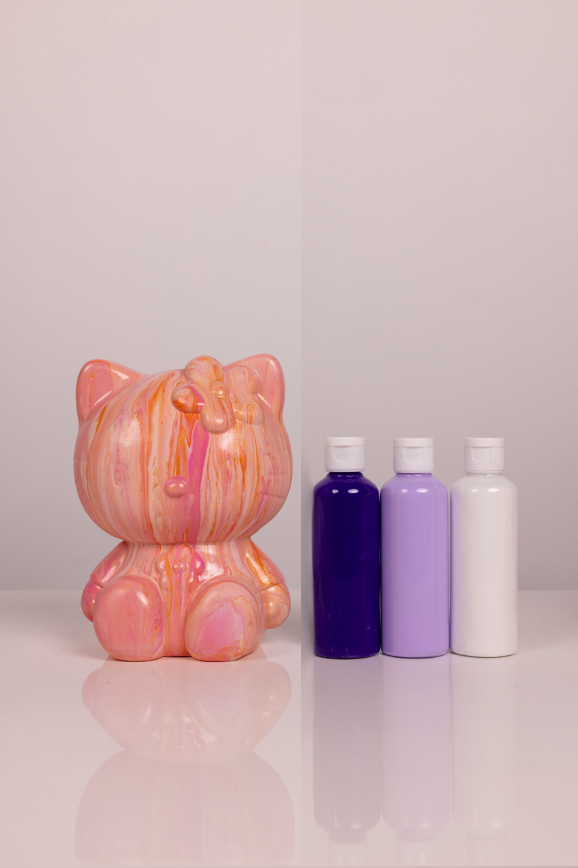 Please note: Colours depicted on the screen may differ slightly to the ones you receive. We have done our best to select colours that closely match. Shake bottles of Fluid Pouring Paint before getting started. Some sculptures come with a coin slot so that they can be used to better paint the sculpture or as a way to encourage saving from an early age!